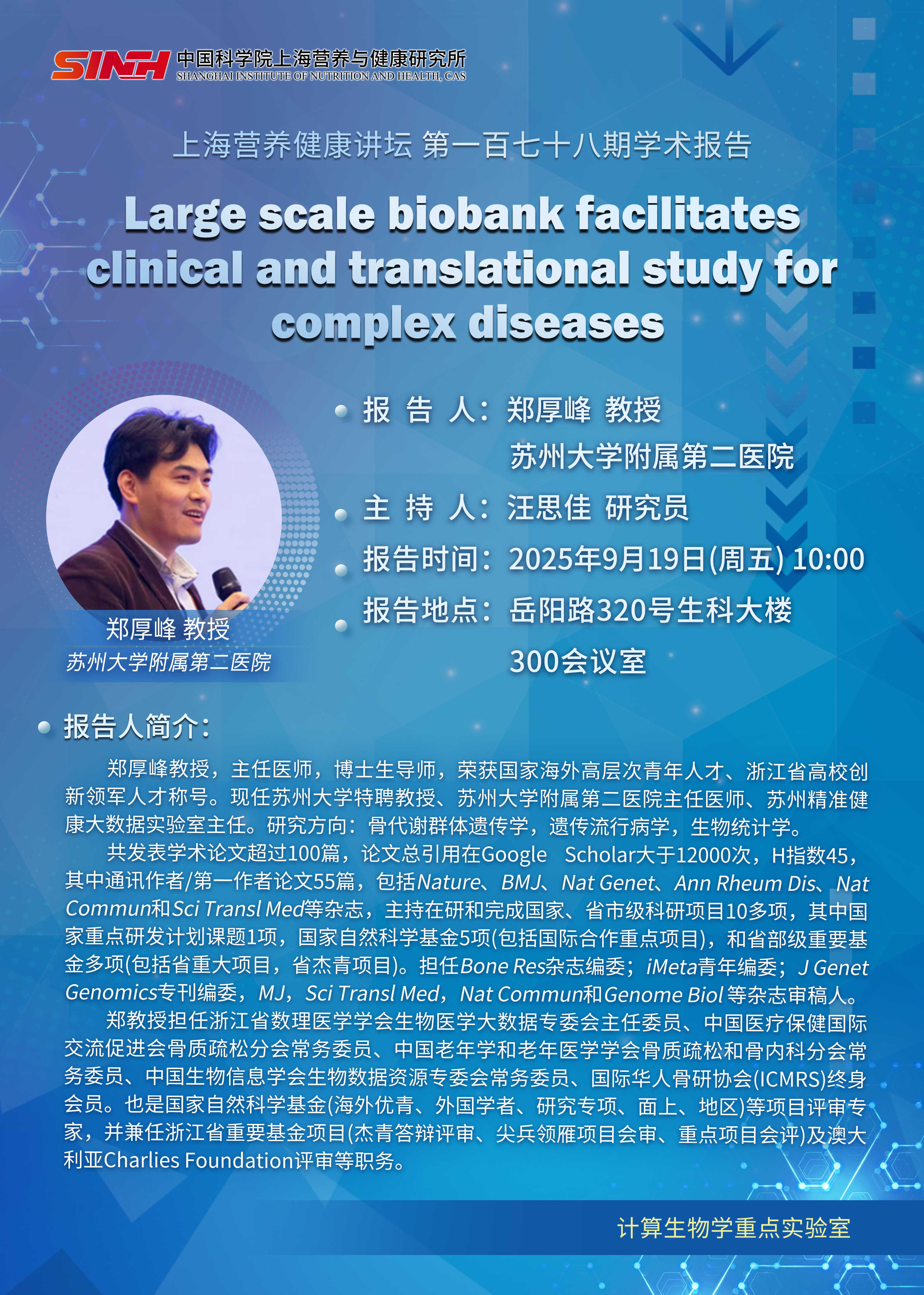 9月19日|Large scale biobank facilitates clinical and translational study for complex diseases-上海營養健康講壇