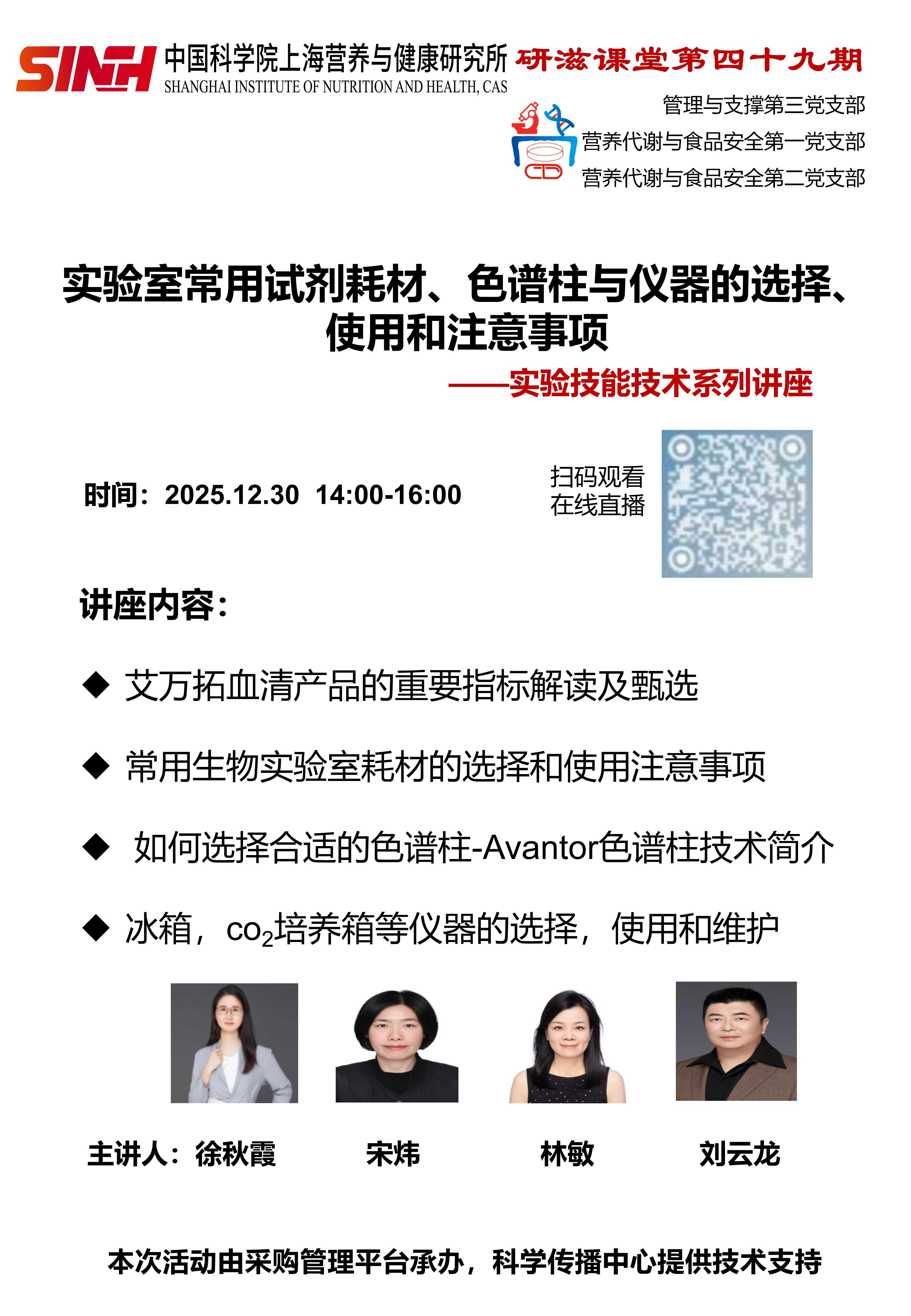 12月30日|實(shí)驗(yàn)室常用試劑耗材、色譜柱與儀器的選擇、使用和注意事項(xiàng)-研滋課堂